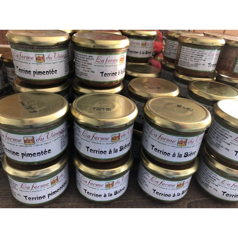 Terrine à la Bière brassée à l'ancienne 200 g. Cette terrine est riche en bonne bière de notre région. Cette bière est brassée de façon traditionnelle, tel que le font les ch'tis depuis des décennies. Laissée à l'air ambiant, la bière se charge des levures naturelles présentes dans l'atmosphère. Cette terrine du Nord à la bière va vous émerveiller sur des toasts!